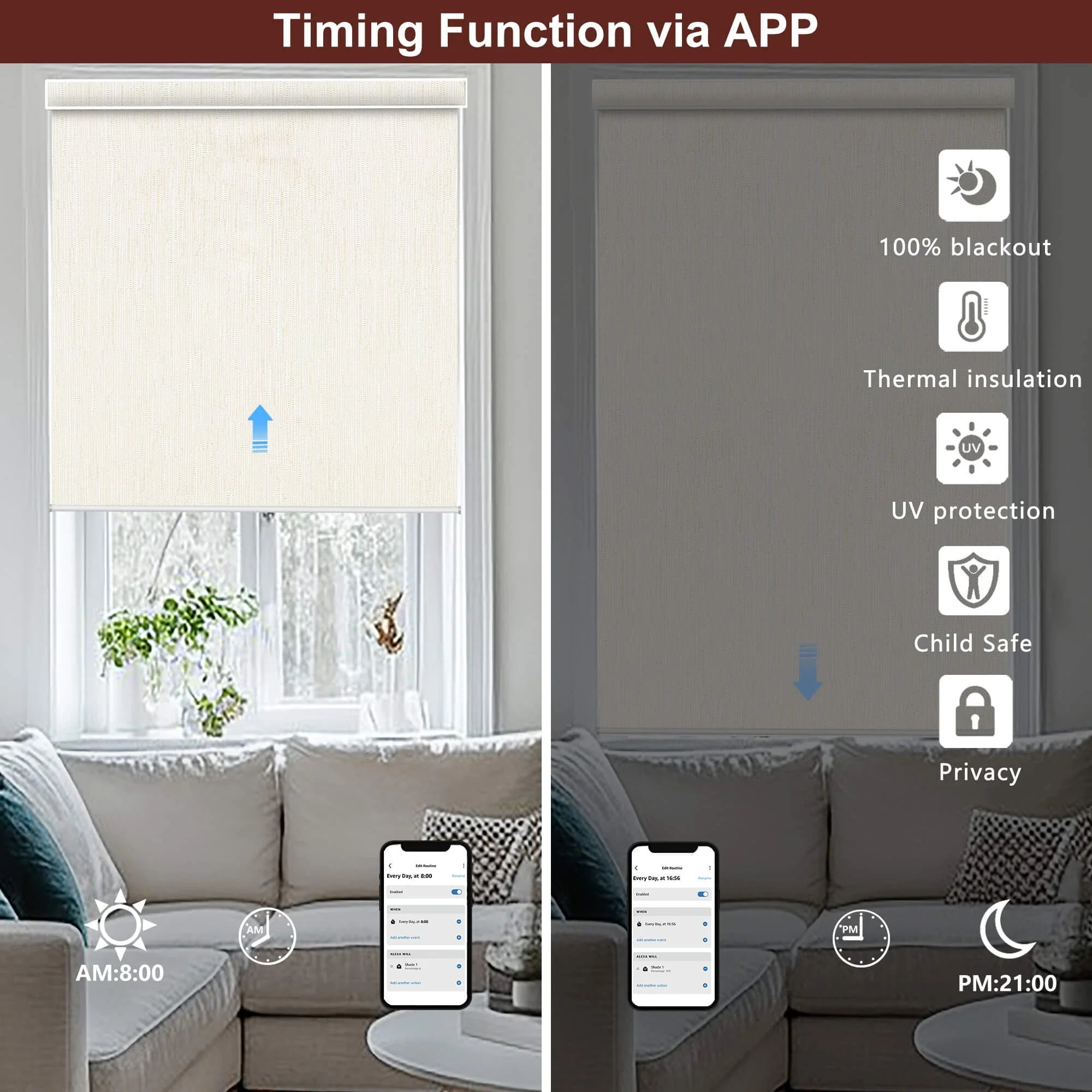 Bringnox Hardwired Motorized Roller Shades 100% Blackout Safari