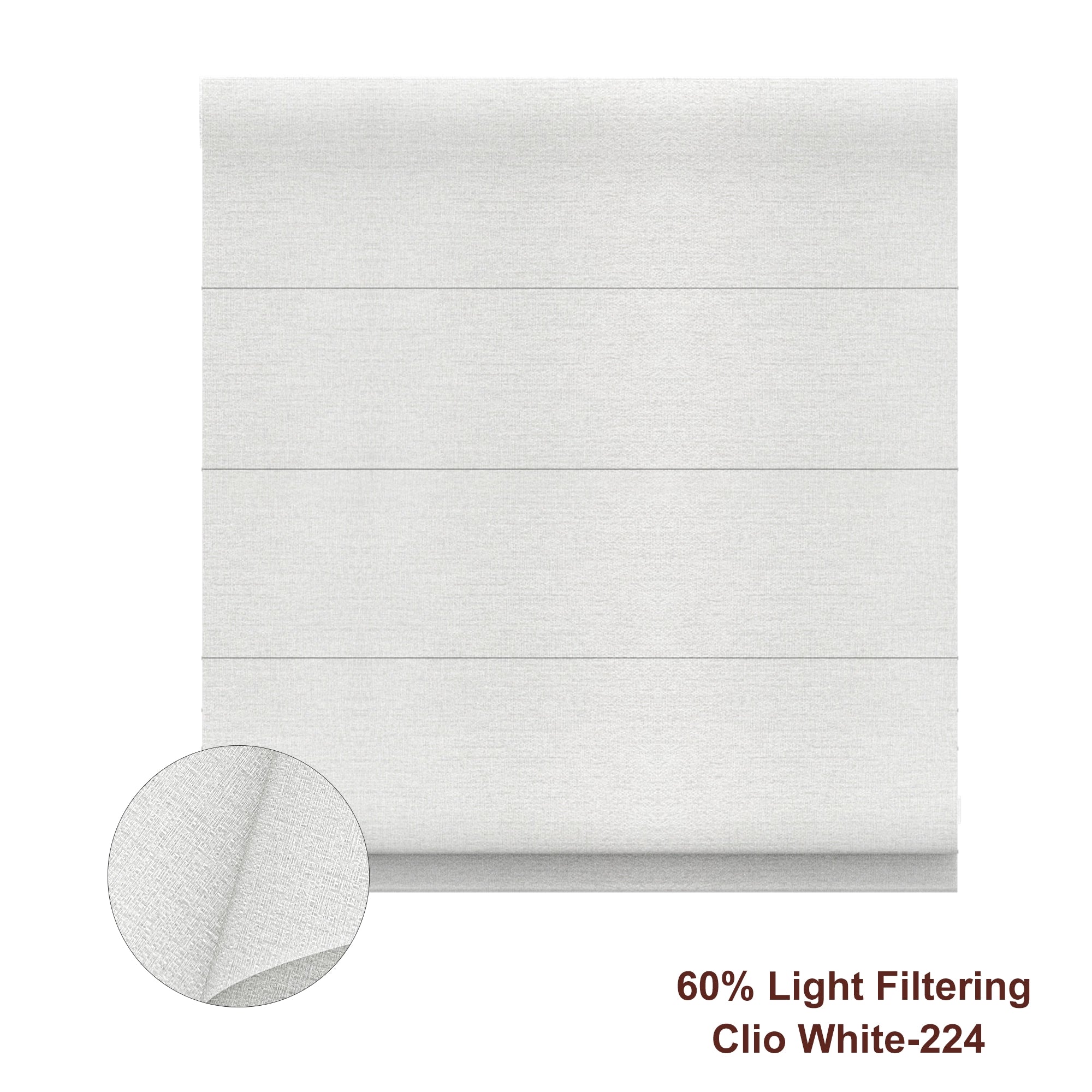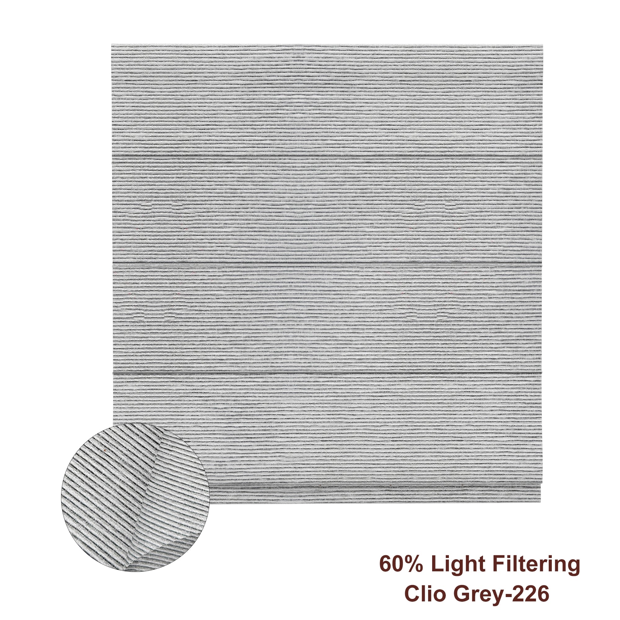 Clio fabric is defined by its calm, mineral-like surface: fine horizontal striations run across the cloth like layers of brushed stone, giving each shade a quiet, architectural depth. The palette moves from soft pearl white to warm sand grey and deep graphite, forming a coherent gradient that feels modern, clean, and understated.