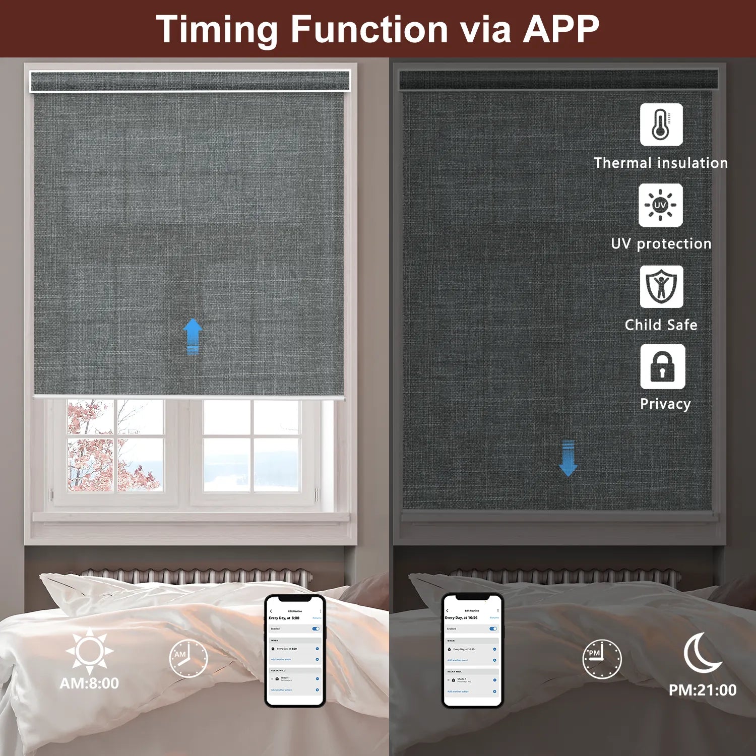 • Voice control of any roller shade and group